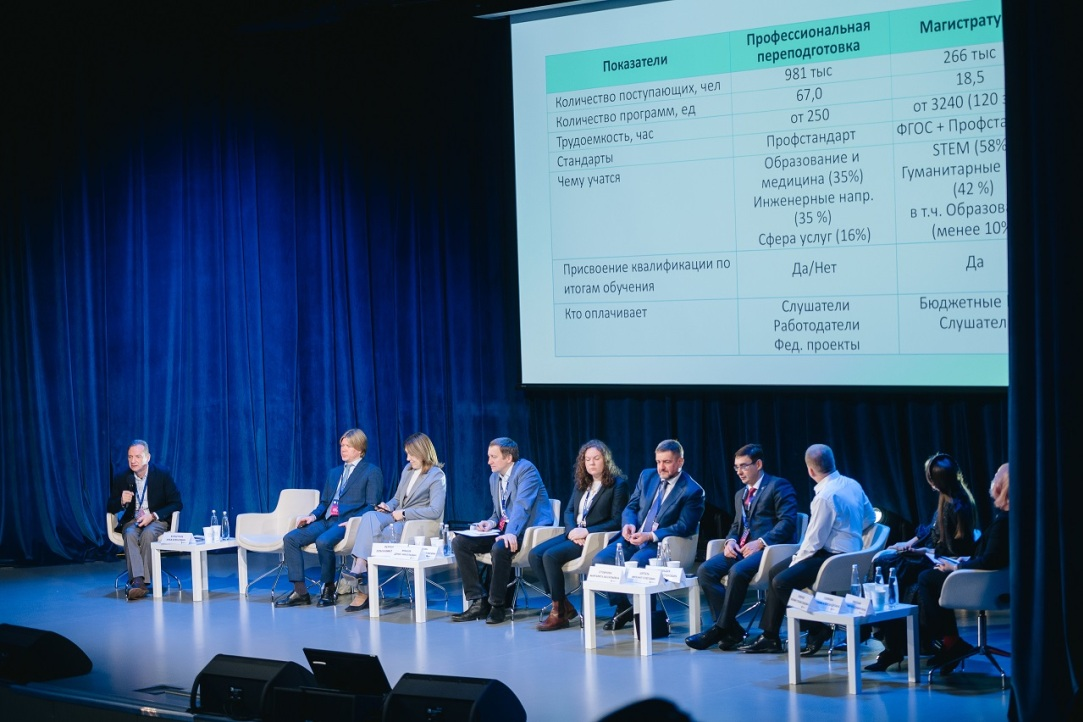 Далее эксперты ведущих российских университетов и научно-образовательных центров представили доклады о ключевых тенденциях развития ДПО: